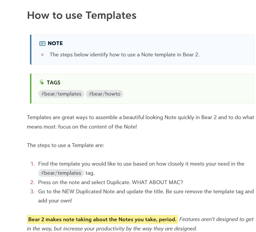 Bear Note Organization Templates