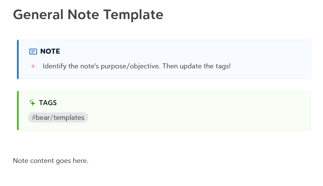 FREE template note system for productive, organized use of the Bear app.