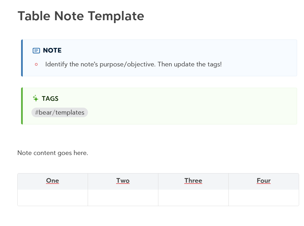 The Table Note Template allows you to quickly start a new note where you know a Table will be helpful to organize your thoughts. The How to Use Templates template above holds the real magic in how this and other templates should be used.