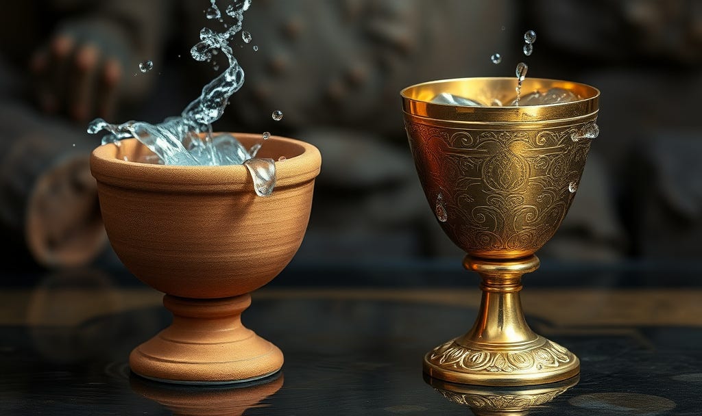 From that day, the traveler carried both vessels. The chalice reminded him of wealth, but the clay cup reminded him of gratitude. And whenever he drank with a thankful heart, he found himself full.